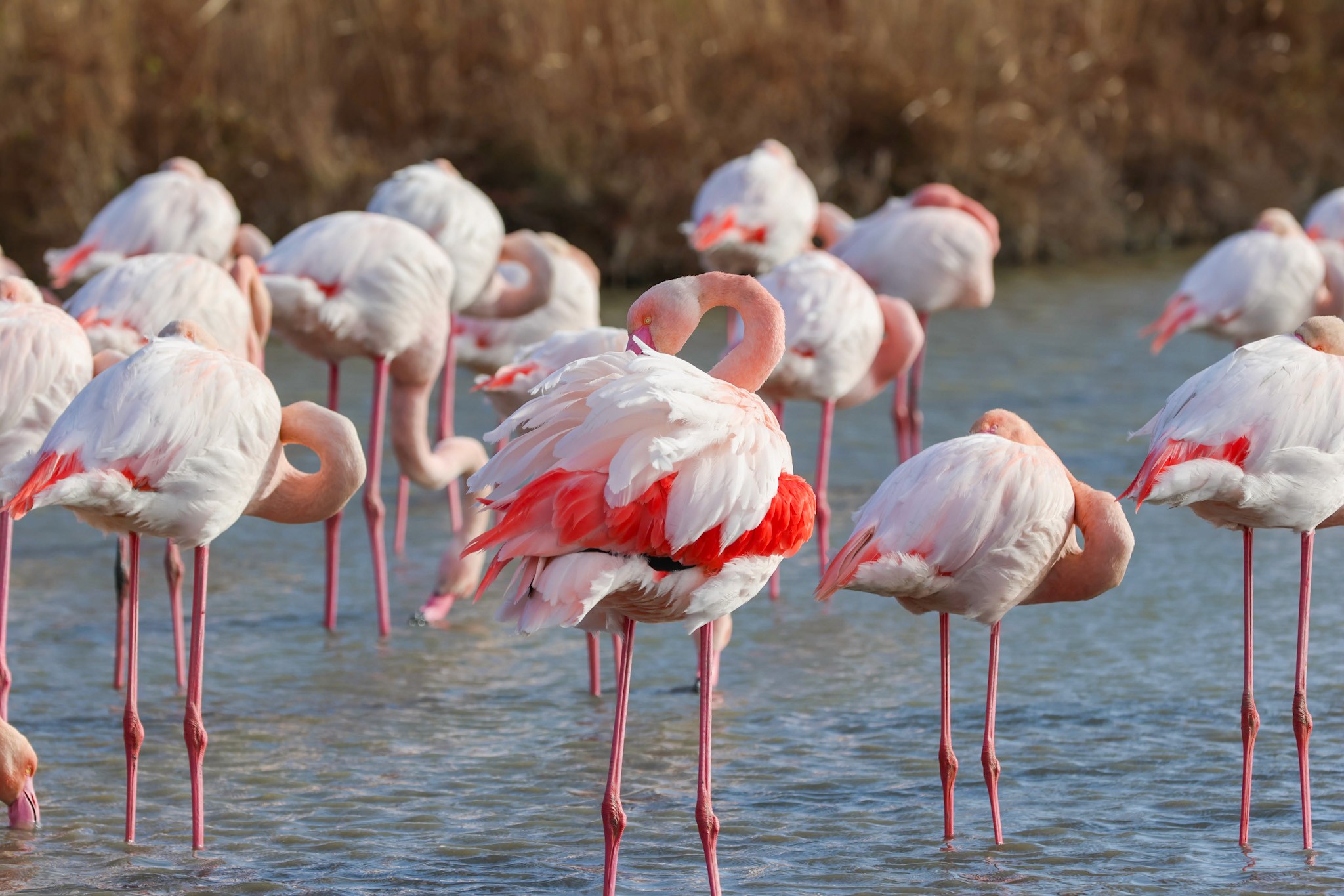 La Moyenne Camargue : Une zone de transition saumâtre, parsemée d'étangs (comme le Vaccarès), véritable royaume des flamants roses.